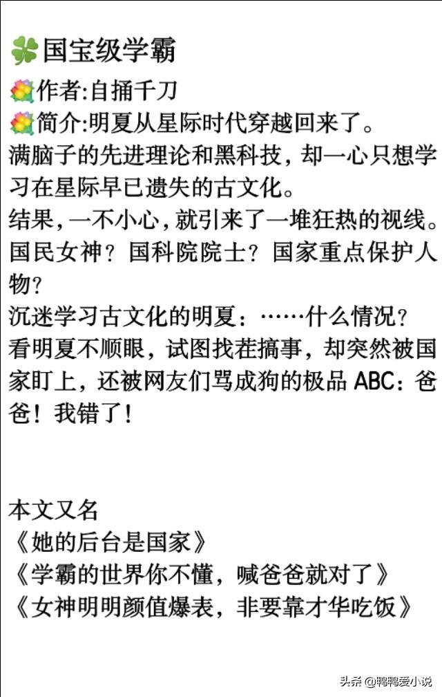 学霸科研型女主文:《国宝级学霸》《虐文女主当学霸》