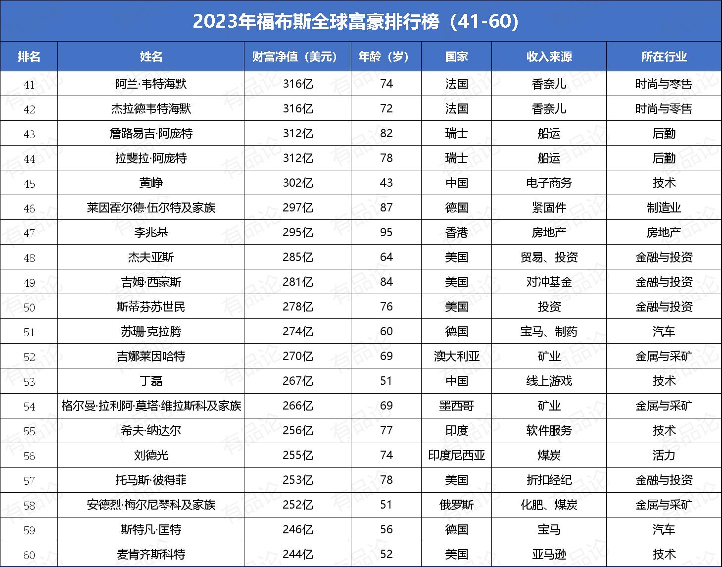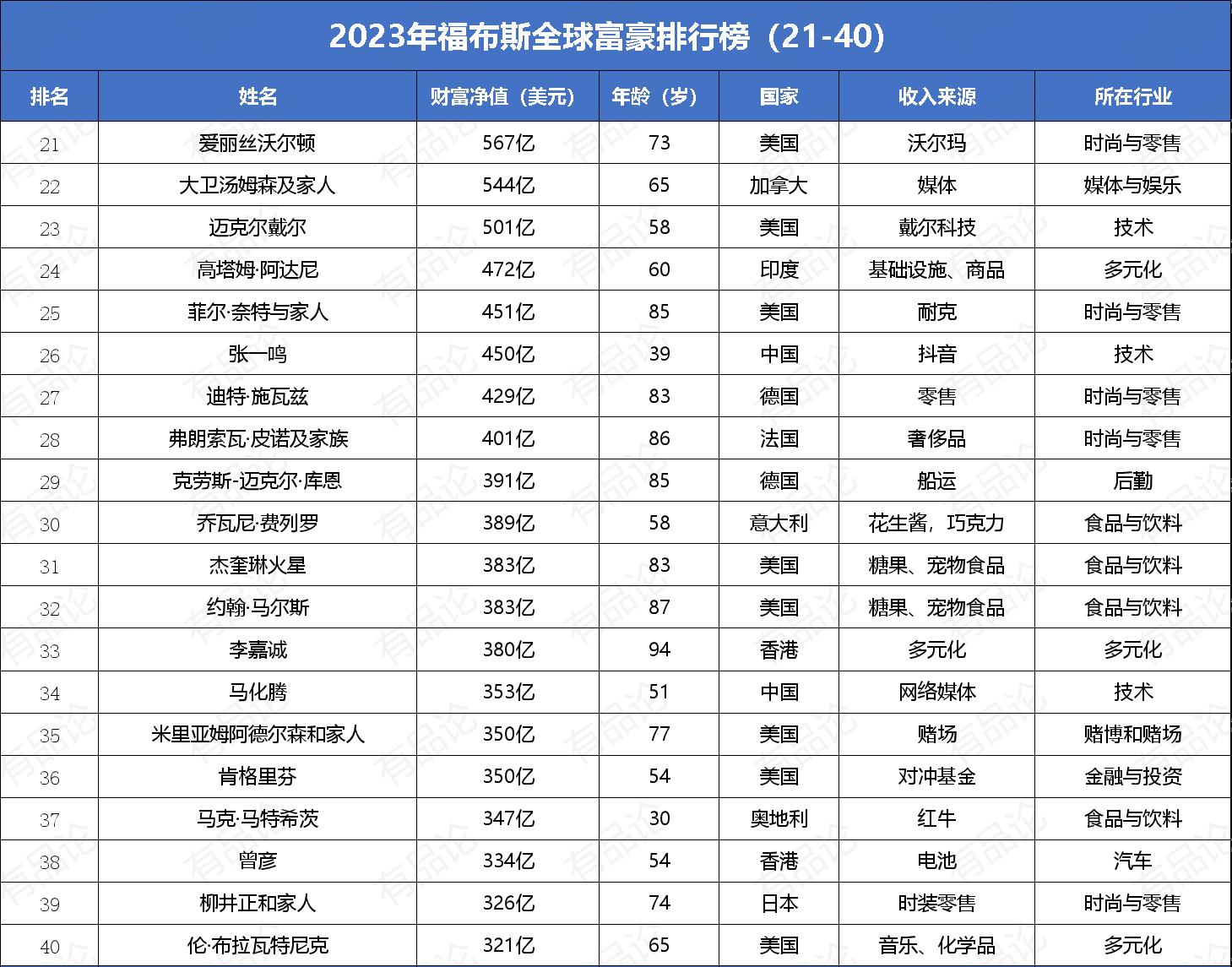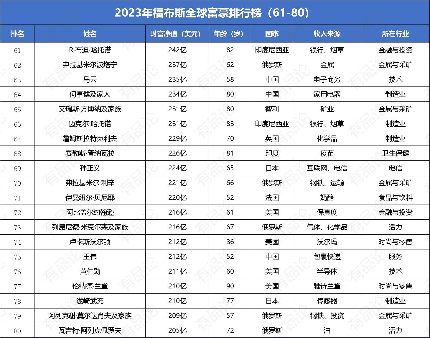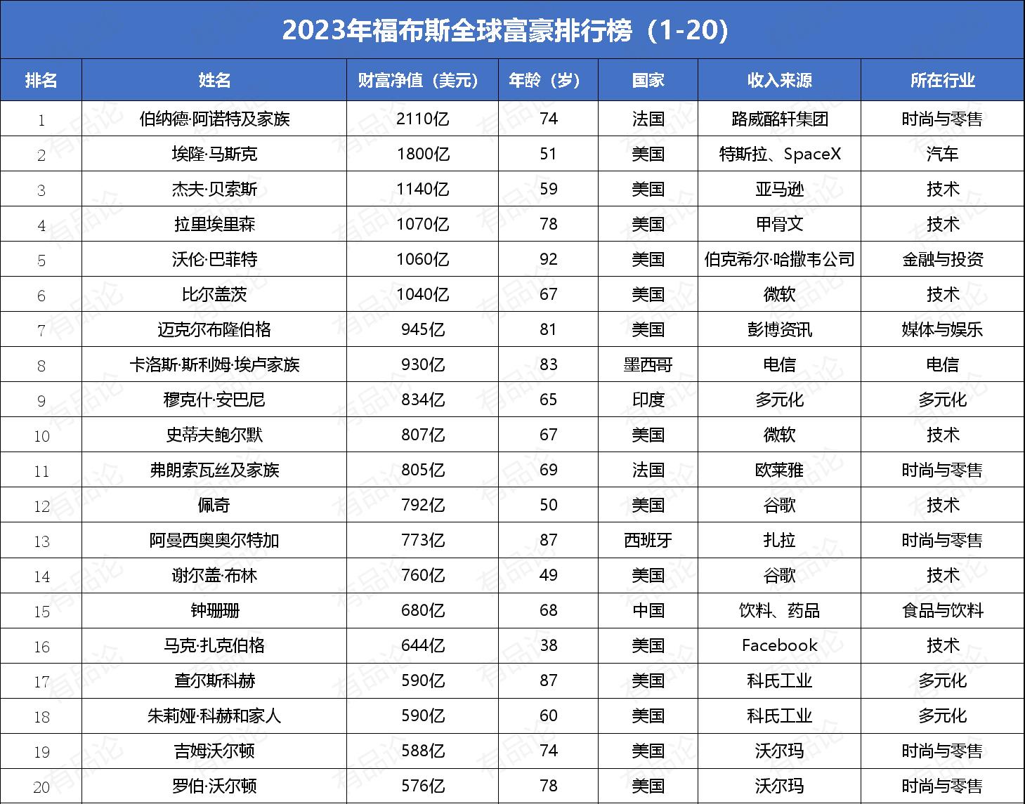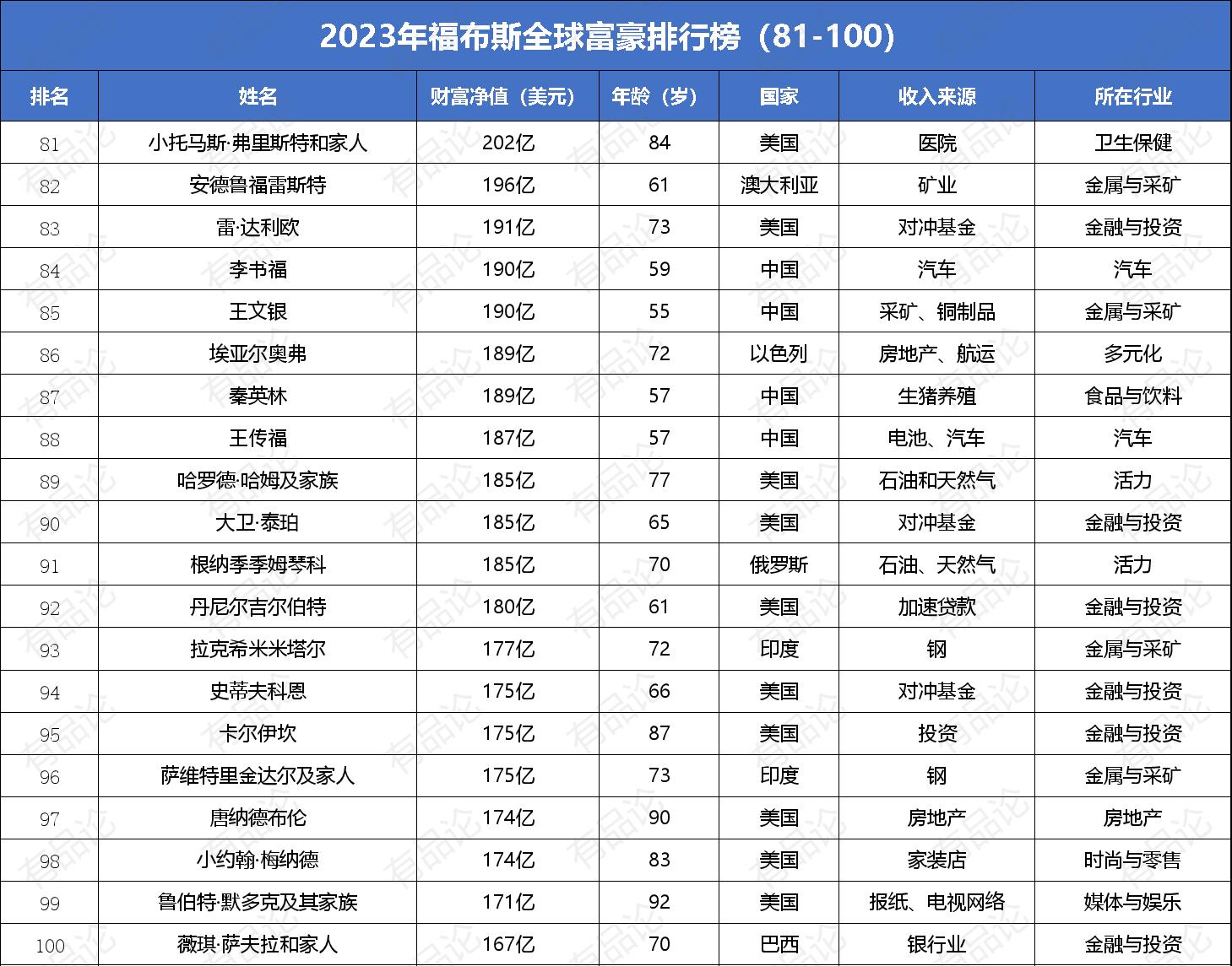 【附录:2023年福布斯全球富豪排行榜前100名榜单】