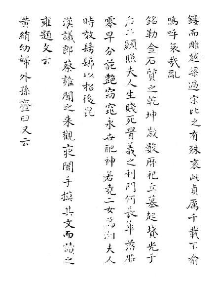 名勒金石,质之乾坤。岁数历祀,立庙起坟。光于后土,显照天人。生贱死贵,利之义门。何怅华落,飘零早分。葩艳窈窕,永世配神。若尧二女,为湘夫人。时效仿佛,以昭后昆。