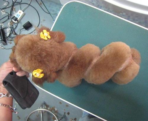 3.麻花型:按照一定的弧线进行剪毛,如果是非专业的爱狗人士,可以到狗狗美容院修毛,免得被你搞成螺丝犬,哈哈