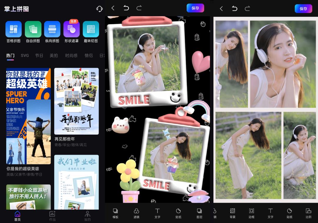 只需要打开软件,选择你喜欢的模板,点进去之后点击拼图同款,上传图片就能自动拼图了,在图片下方还可以选择滤镜、文字和贴纸,编辑好之后点击“保存”,就可以将拼图保存到相册中了。