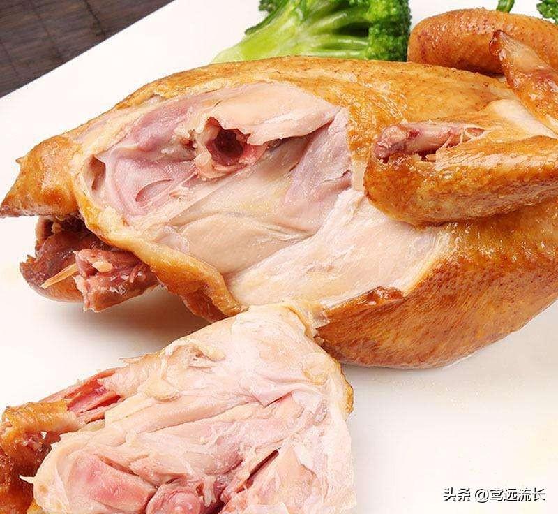 将鸡颈部宰杀放血,在60℃的热水中浸烫褪毛,清洗干净。在鸡右翅前面颈侧开一小口,拉出食管和气管。在腹下靠近肛门处开口,掏净内脏,冲洗干净。