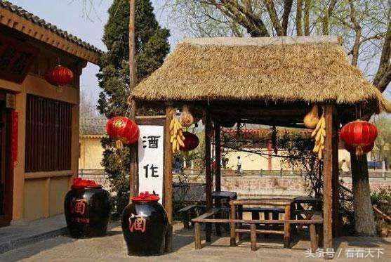 酒旗,在古时相当于现在的招牌、灯箱或霓虹灯之类。在酒旗上署上店家字号,或悬于店铺之上,或挂在屋顶房前,或干脆另立一根望杆,扯上酒旗,让其随风飘展,以达到招徕顾客的目的。有的店家还在酒旗上注有经营方式或售卖数量等内容,以便让客人一目了然。《水浒传》里武松打虎前所进店家的招旗写着“三碗不过冈”;而孟州蒋门神“河阳风月”的招旗“醉里乾坤大,壶中日月长”,即使与现代广告语相比,也毫不逊色。