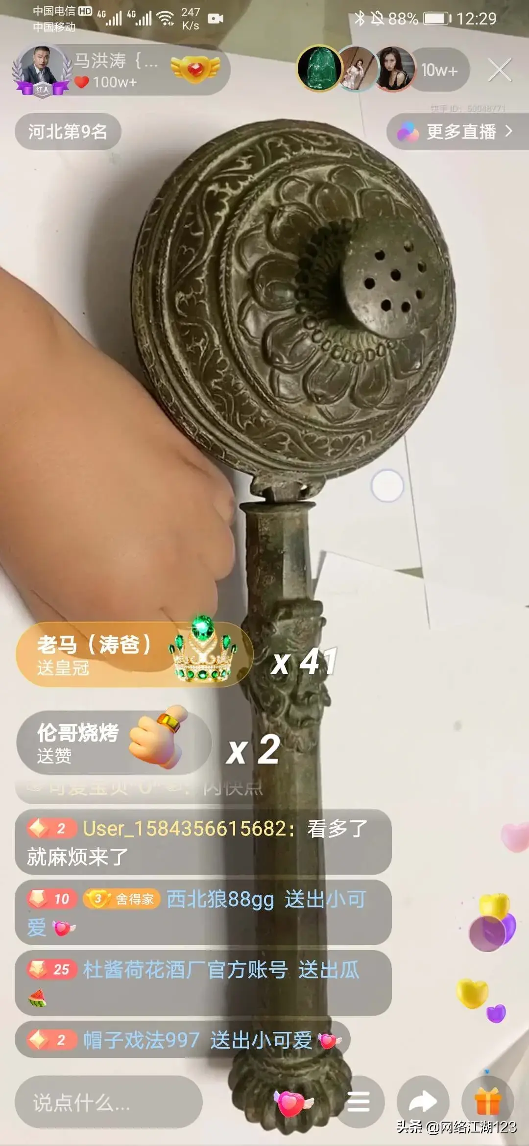 快手江湖之马洪涛直播间展出收藏品,黄圣依老公杨子出价1亿收购
