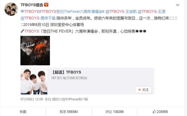 TFBOYS六周年演唱会官宣:8月10日三人再度合体