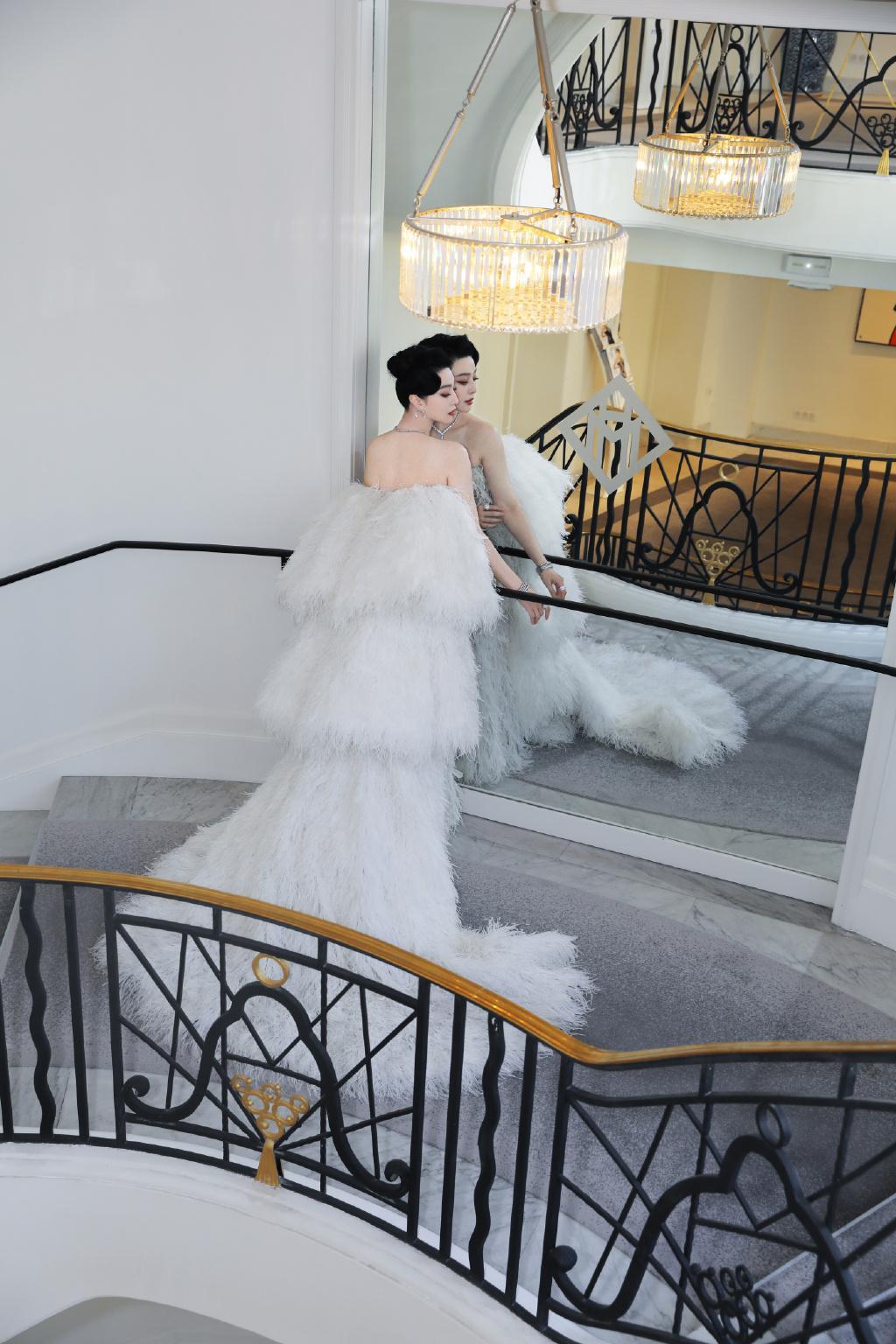 戛纳方面也给足了范冰冰台面,给了她几乎清场的待遇,而且直播镜头一直没离开过她,从入场到中景,再到背影,从裙摆处摇臂扫到惊艳回眸,全场景、多角度跟拍。