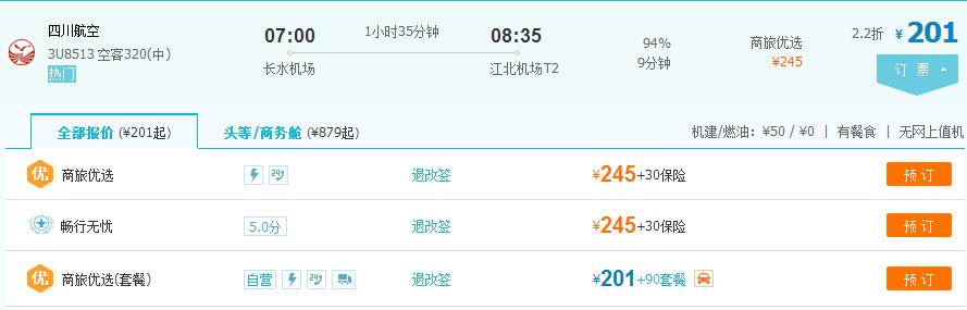 当然还有一个方面也是用户十分关心的那就是票价,笔者点击去哪儿网的网站和客户端看到,目前各航空公司旗舰店取消后,机票已经无法直接从各航空公司处购买,而只能从不同的代理商那里购买。还是以川航为例通过票价比对我们可以看到:昆明飞重庆的同一时间航班,川航官网订票价格260元但是没有任何的附加资费,而去哪儿尽管显示的价格201元更加优惠,可是进入预定页面是需要同时购买附加套餐201元+90元才可以出票的。所以,通过去哪儿购票也并没有享受到实际的优惠,反而选择官网直接购买才是底价的优惠并且还可以享受优质的服务。