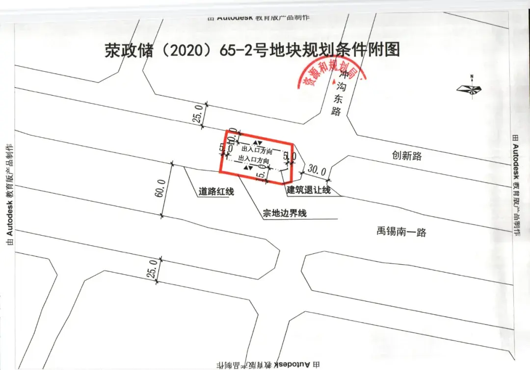 根据公告,荥政储(2020)65-2号土地位置在冲沟东路与禹锡南一路交叉口西南侧,土地面积3713.46平方米,出让年期40年,土地用途为加油加气站用地,建筑高度<12米,建筑密度<30%,绿地率>20%,容积率<0.8,起始价1560万元。
