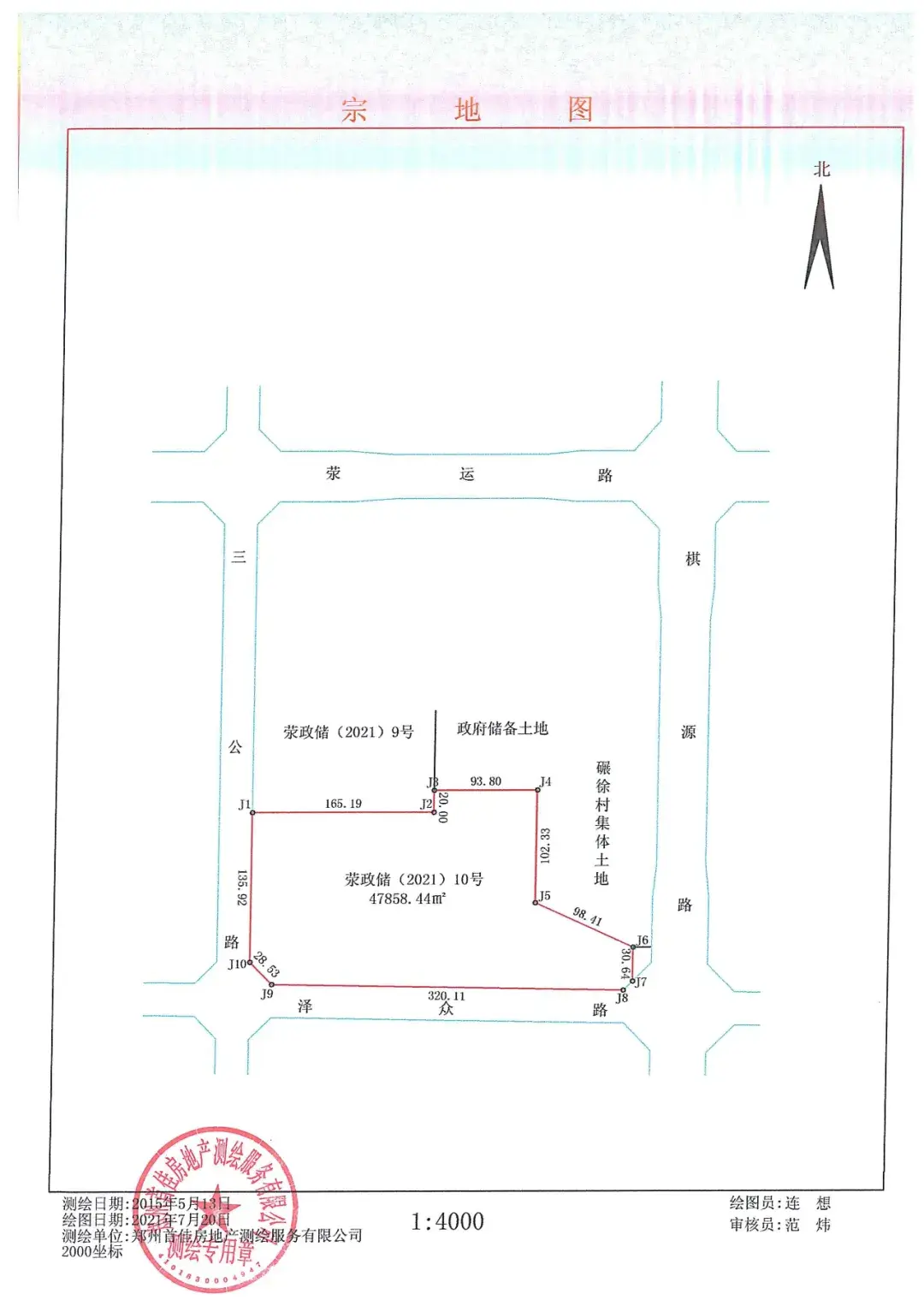 荥政储(2021)10号土地位置在泽众路与三公路交叉口东北侧 ,土地面积47858.44平方米,出让年期70年,土地用途为城镇住宅用地,建筑高度<54米,建筑密度<20%,绿地率>35%,1.0<容积率<2.0,起始价20190万元。