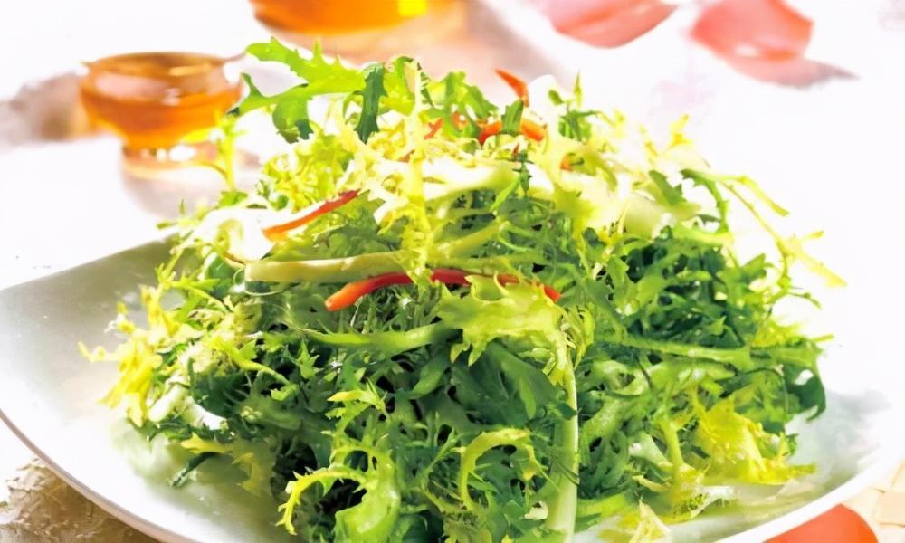 注意:苦菊很嫩,炒塌就可关火出锅。