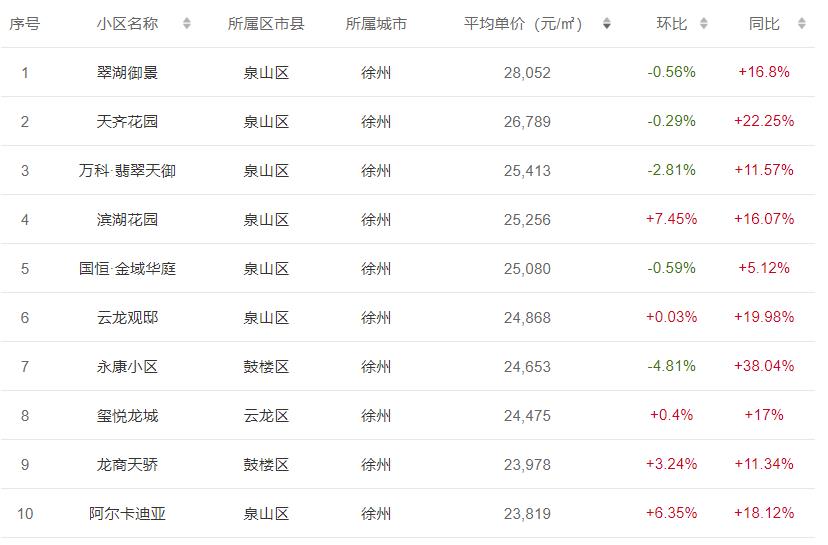 值得注意的是,在2020年底公布的70城房价中,徐州出现了时隔5年的首次下跌,然而2021年初,大部分又开始上涨了。最新数据显示,徐州市区像云龙、泉山、鼓楼、铜山等区块均价都有不同幅度的上涨,唯有贾汪区房价跌幅明显,同比下降4.31个百分点。同时,贾汪区也是整个徐州市同比环比双跌的区块。