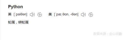 通常来说在我们国内的媒体,包括很多同行,我们通常来说把这个单词发音为派森,中文的“派森”的一个变音。我们可能管他叫“派森”。但是呢,实际上通过看一些国外的讲座和一些Python的会议,我们发现实际上美国人喜欢把他叫做“派放”,我们翻译成汉字可能就类似于“派放”这么一个发音。到底哪一种发音才是正确的呢?小编就在百度翻译上较真了一下,最后发现这个单词的英文发音就叫“派森”,美式发音就叫“派放”。所以两种发音实际上都是正确的。只取决于你更倾向于使用英式的发音还是使用美式的发音。