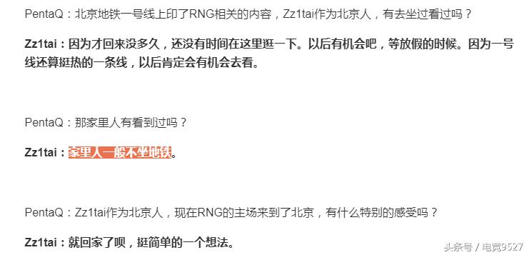 另外北京地铁一号线上印了RNG相关的内容,姿态作为北京人,记者还问到说,“Zz1tai作为北京人,有去坐过看过吗,家里人有看到过吗?”姿态表示“家里人一般不坐地铁”。