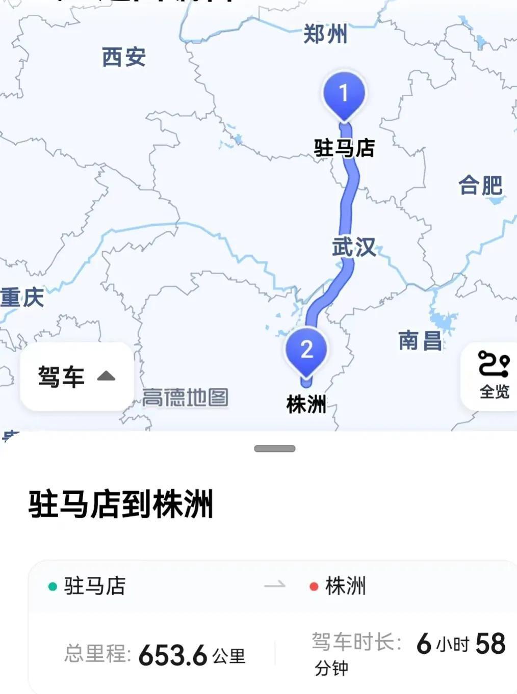 第二天:驻马店到湖南省株洲市。走二广、京港澳高速,行车670公里,用时7小时16分。