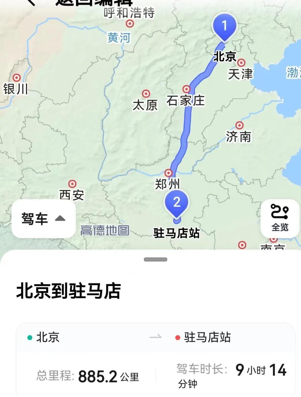 第一天:北京到河南省驻马店市,走京开、大广、兰南高速,行车887公里9小时20分。