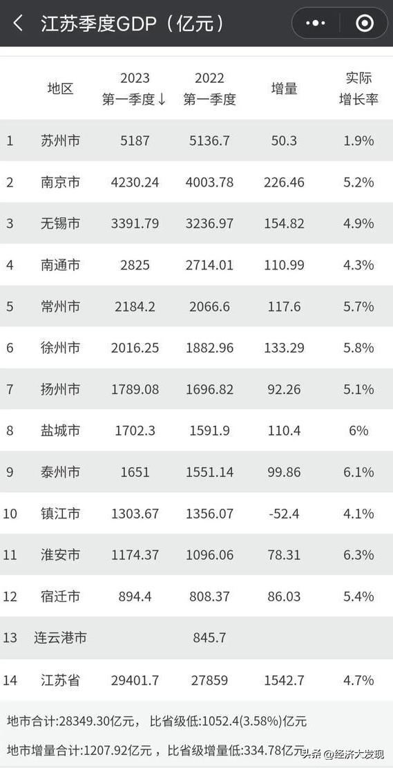 江苏城市GDP排行:苏州总量第一,南京增量夺冠,镇江遭遇负增长!