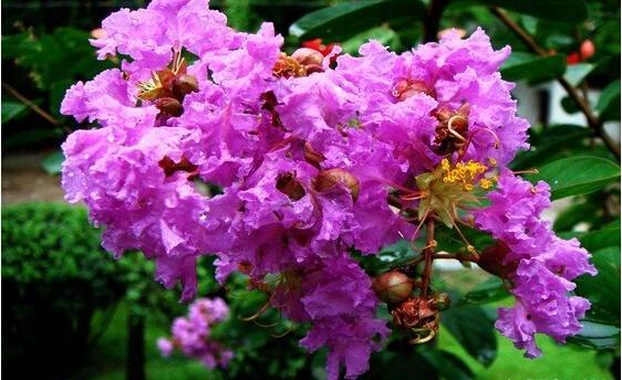 紫薇花是襄阳本土树种,花期特别长,从初夏一直到深秋,是名副其实的“百日红”,宋代诗人杨万里曾赋诗赞道:“谁道花红无百日,紫薇长放半年花”。它的种类繁多,除紫薇外,还有同一属的尾叶紫薇、大花紫薇等,在襄阳主城区和下辖各县市,不仅可见树龄在百年以上的高大紫薇,还有许多苍老而富有生机、树龄达数百年的尾叶紫薇古桩。