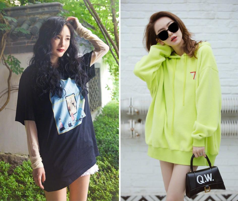 这一种很街头的感觉。宽松的衬衣穿在杨幂身上更加显娇小。解开一两个扣,很时尚,搭配新发型,碎发修饰脸型,配上棒球帽反戴,更加减龄时尚。