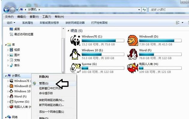 右键点击“计算机”,打开“管理”