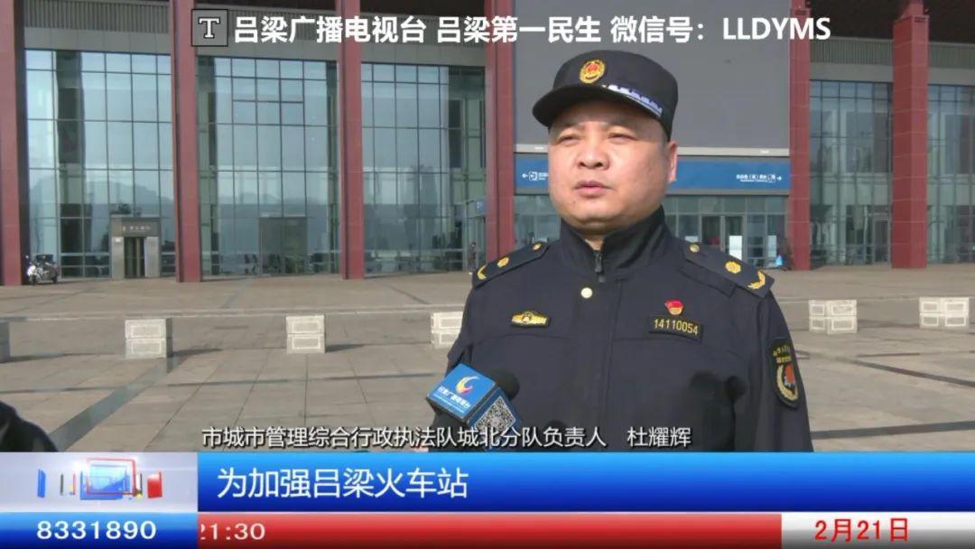 市城市管理综合行政执法队城北分队负责人 杜耀辉 :目前,我们已经建立了全天候巡查机制,对乱扔烟头、随地吐痰,随地便溺,周边商户户外经营、乱搭乱建、占道经营等违法行为进行规范整治,收到了良好的效果。在这里我要特别提醒广大市民,咱们创城成果来之不易,火车站更是咱们城市的一个窗口,希望广大市民共同努力,维护好咱们吕梁窗口的美好形象。