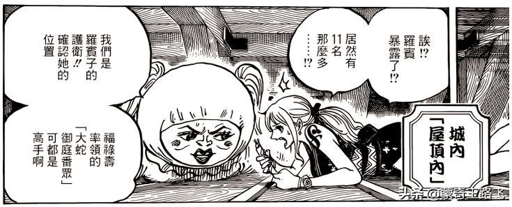 小紫之前的行为就已经很可疑了,现在身上又出现了暗号图,只有光月御田家族的人才能看懂这张图的意思,基本能够确定小紫就是桃之助的妹妹光月日和了。随后,娜美身边的宙斯出现,对着大蛇将军发动了攻击。