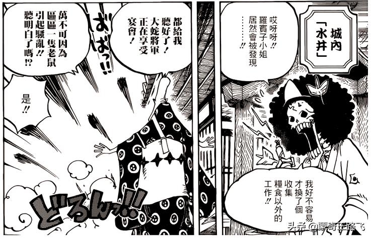 漫画的最后一页破落镇再次上线,大妈正在享受阿鹤的招待,大妈似乎变成了当年那个天真无邪的她,此时正竖着拇指赞同乔巴和其他人说的话。大妈:兔碗?那里有很多年糕小豆汤吗?那我们快点出发吧!看来乔巴这次真的要逆袭了,大妈很认同乔巴,已经把乔巴当成好伙伴,目前和之国中,恐怕连凯多都不敢轻易靠近乔巴了。