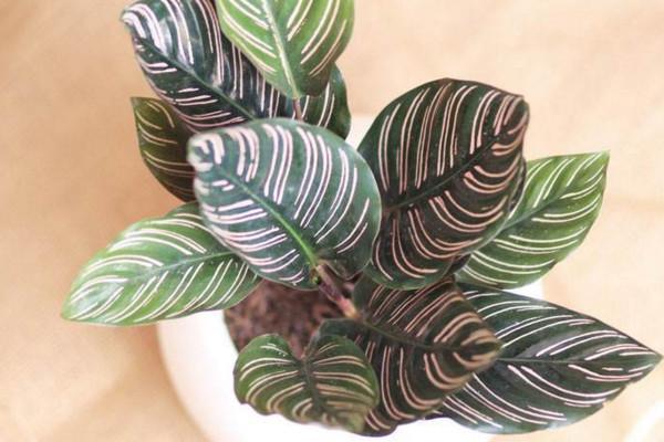 顾名思义,双线竹芋就是它的叶片上的花纹都是由两条细细的线条组成的,特别整齐,就好像是人为画上去一样,叶片的背面是深紫色的,栽培也比较简单。