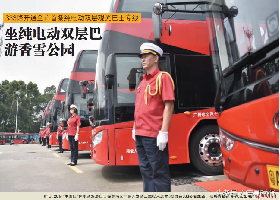 昨日,20台“中国红”纯电动双层巴士在黄埔区、广州开发区正式投入运营,作为广州市首条全程纯电动双层巴士运营观光专线,投放在333公交线路。据悉,黄埔区预计9月底前将率先实现公交车100%纯电动化。