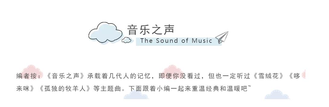 这部美好如童话一般的音乐剧,由真实故事改编。女主人公玛利亚善良、纯洁,围绕身边的七个孩子,就好似七个音符,构成了一首明快、动人的童谣。《音乐之声》把时光浓缩,让一切都单纯、明亮、对比分明,也让全世界的人记住了那个萨尔斯堡午后的山谷,阳光灿烂,七个孩子和一位美丽的姑娘,用歌声放飞爱、自由与梦想,构成了观众最值得珍惜和细细回味的记忆宝藏。