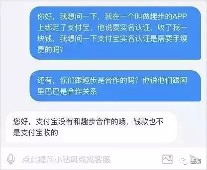 "实际上,支付宝和趣步根本不存在合作关系。通过与支付宝的人工客服求证得知,支付宝没有和趣步合作,钱款也不是支付宝收的。