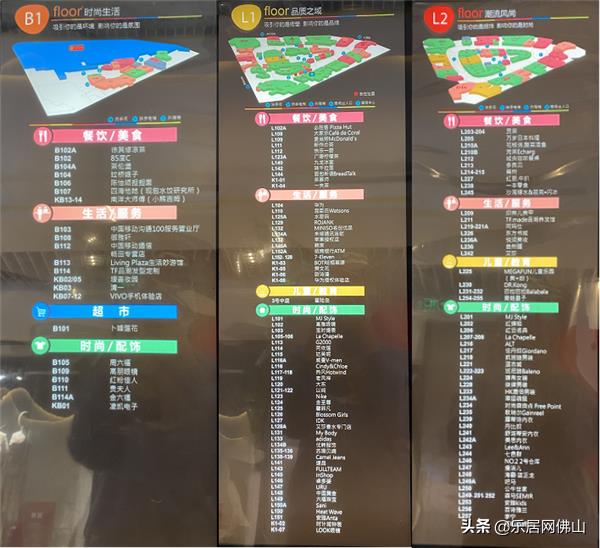 南海怡丰城商场水牌,部分品牌有变动