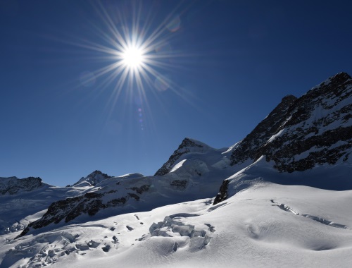 这是2月14日拍摄的瑞士少女峰景色。 新华社记者 连漪 摄