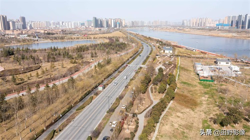 航拍咸阳高新区两寺渡公园段,环境优美。