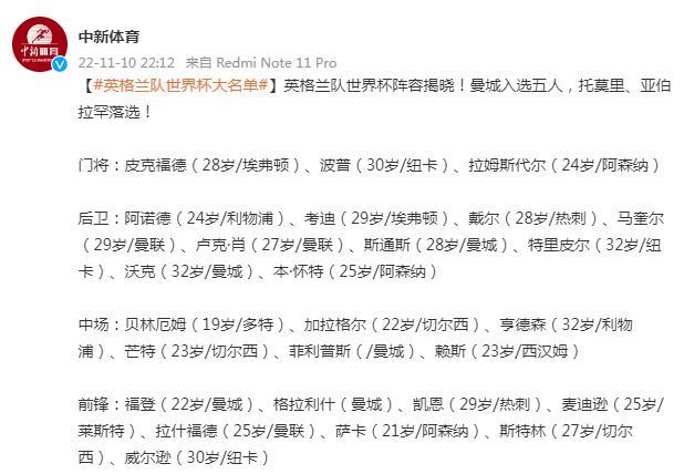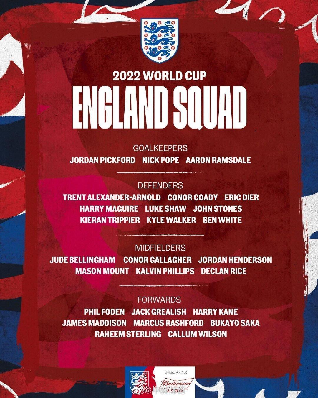 英格兰队世界杯阵容揭晓!曼城入选五人,托莫里、亚伯拉罕落选!