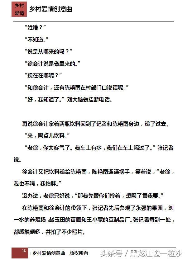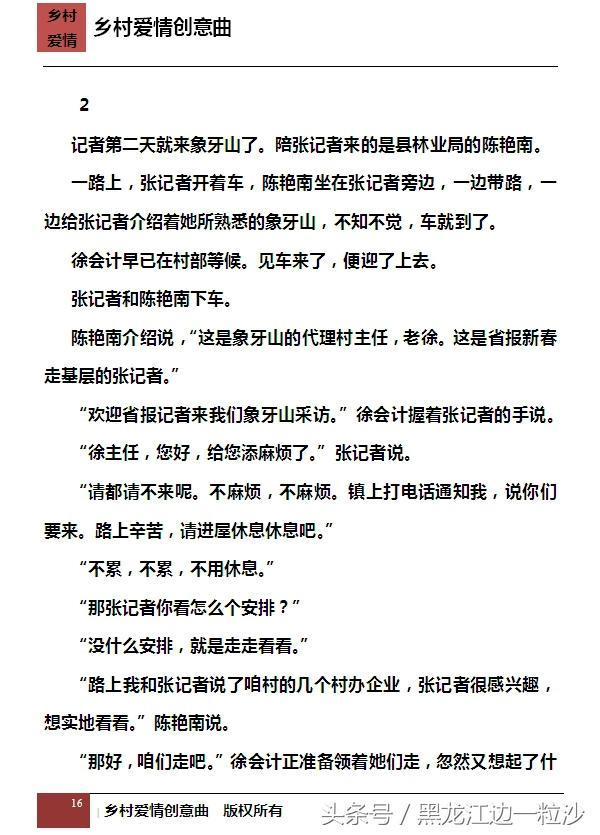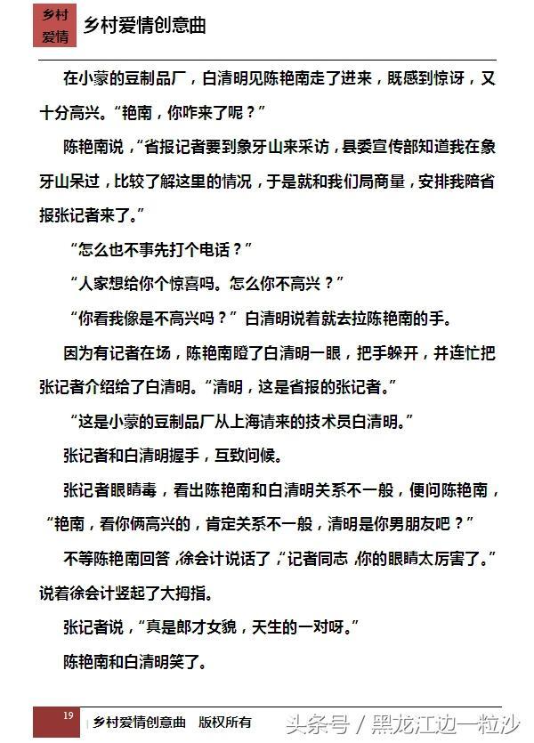 省报新春走基层的记者来象牙山采访,县里派已到林业局工作的陈艳南陪同。一路上陈艳南,一边带路,一边介绍她所熟悉的象牙山。来的时候,陈艳南并没有告诉多日不见的男友白清明,她要给她一个惊喜。连载3。