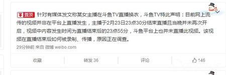 斗鱼TV回应主播郭mini三点全露事件 称并未在直播期间发生