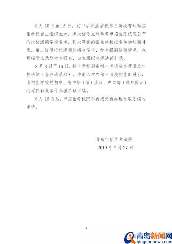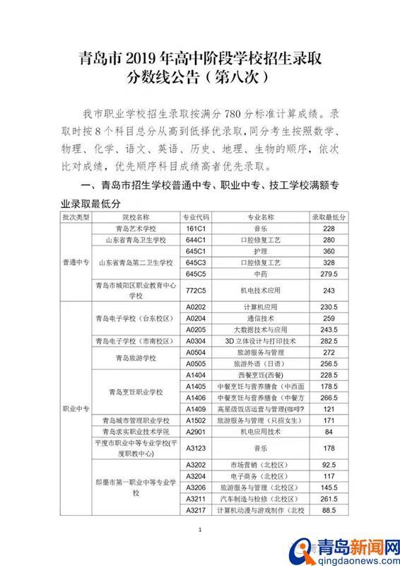 青岛新闻网7月27日讯(记者 于泓)今天上午,青岛市招考院发布第八次中考分数线,青岛卫校口腔修复工艺专业最低录取分280分,各中专学校录取分数线如下: