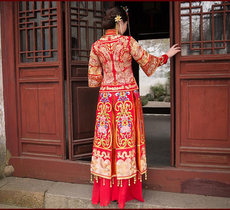 秀禾服,又名龙凤褂。起源于中国满洲人服饰。因为其绣工精美,造型典雅,深受今日新娘的追捧。成为婚嫁当日的一道亮丽风景线。