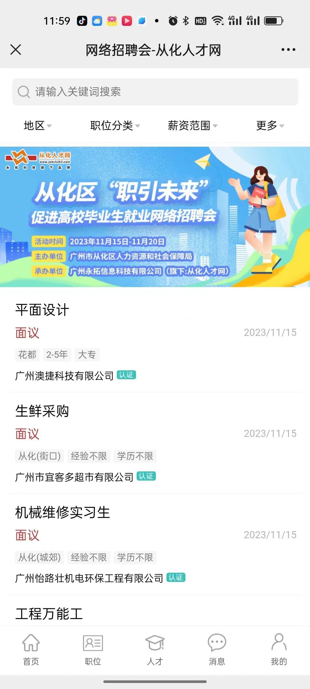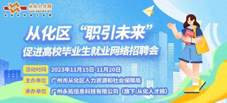 由广州市从化区人力资源和社会保障局主办;广州永拓信息科技有限公司(旗下:从化人才网)承办的从化区“2023金秋招聘月”暨重点用工企业专场网络招聘会,火热进行中啦!