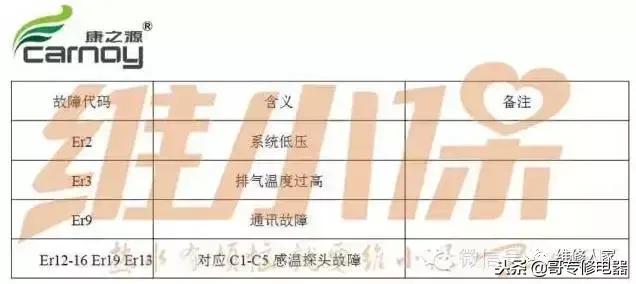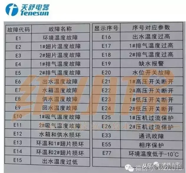 常见空气能热泵故障代码汇总:
