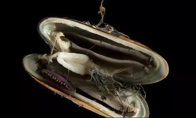 这个贝壳类的生物,内部貌似有很多的小电线一样,密密麻麻的,