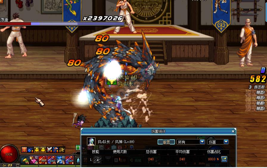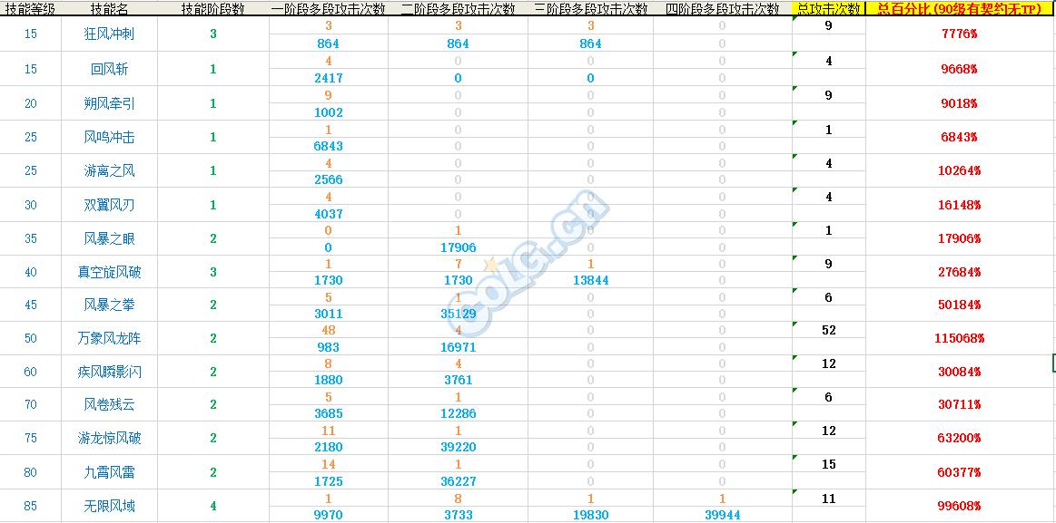 Tips:1. 小技能中风鸣冲击和双翼风刃百分比最高;