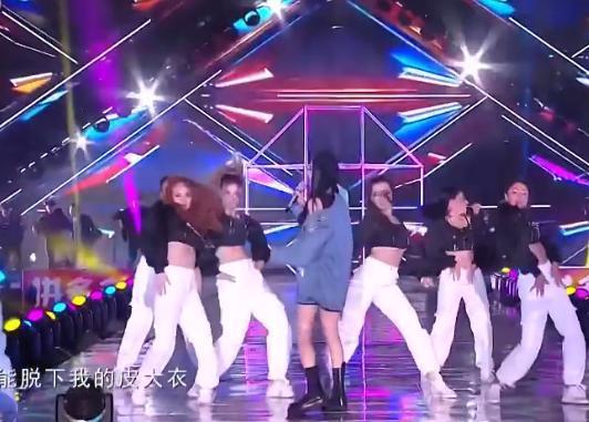 杨幂跳舞时脱掉外套,却忘记里面穿着吊带背心,救场动作很保守