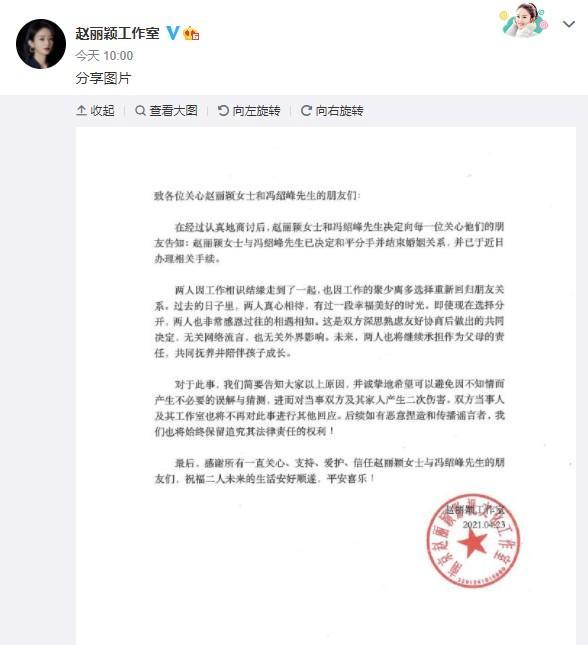 赵丽颖、冯绍峰真离婚,曾因否认离婚传言胜诉获赔7000元