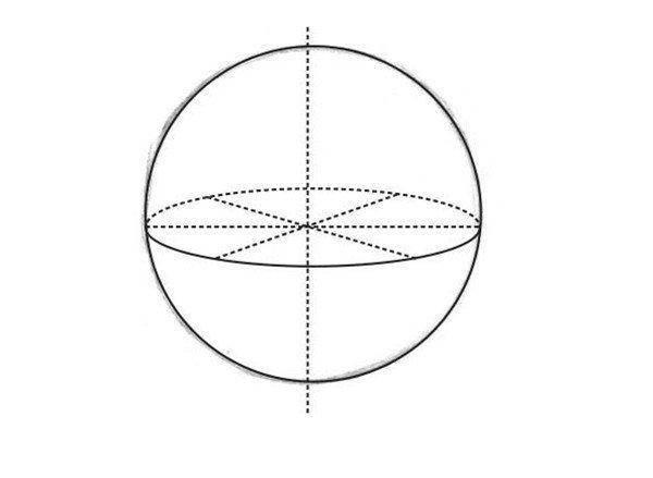 球体的基本形体是由弧形线条构成的,找出一个交点为球体的圆心点。以圆润的曲线画出其结构形体。