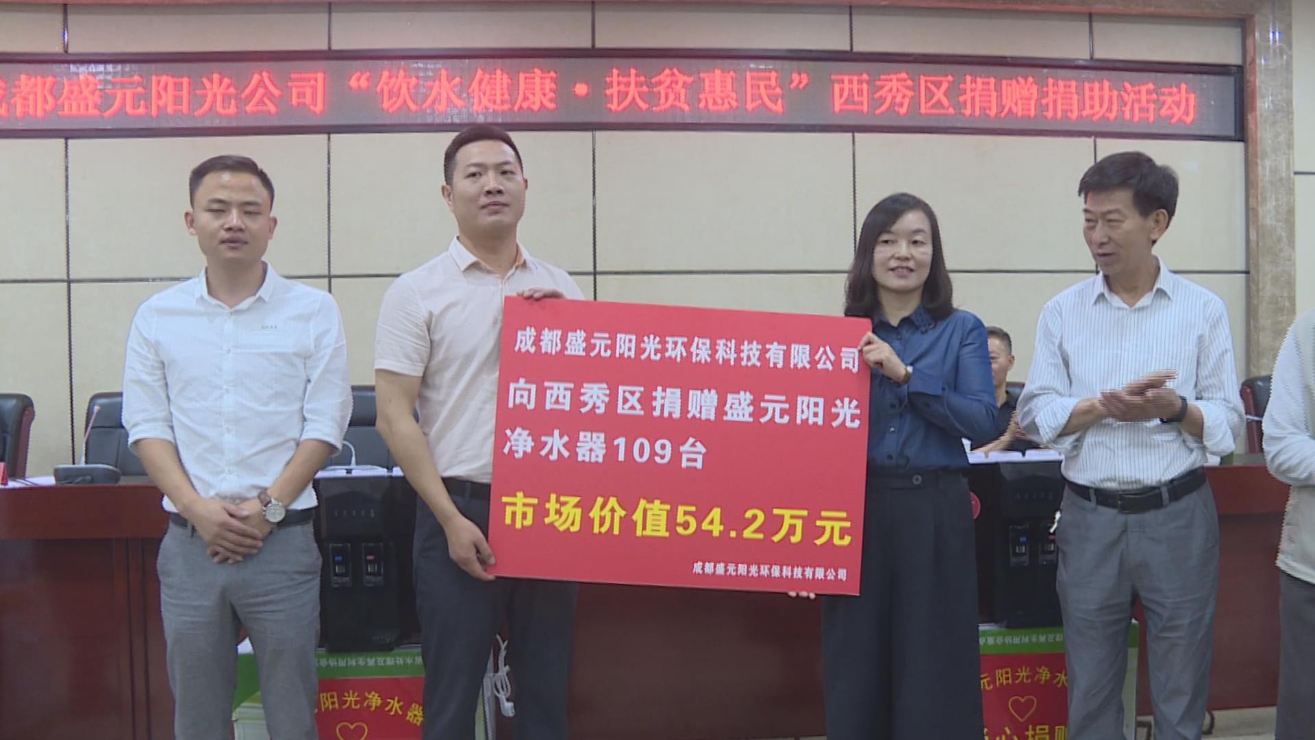 据悉,此次成都盛元阳光环保科技有限公司向西秀区16个乡(镇、两郊办)的109个贫困村便民活动中心捐赠“盛元阳光”牌净水机109台,总价值542820元。公司负责人表示,将会进一步利用自身的行业优势、技术优势、服务优势来回报社会,扶贫惠民。