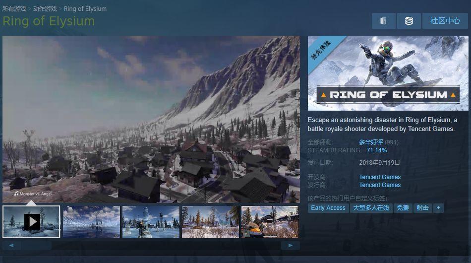 腾讯吃鸡《Ring of Elysium》上线Steam,没中文缺获多半好评?