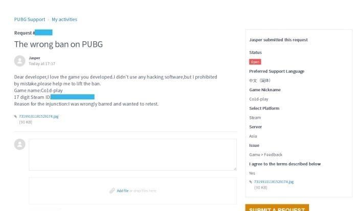 1:申诉网址:https://support.playbattlegrounds.com/hc/en-us/requests/new(需要科学上网)