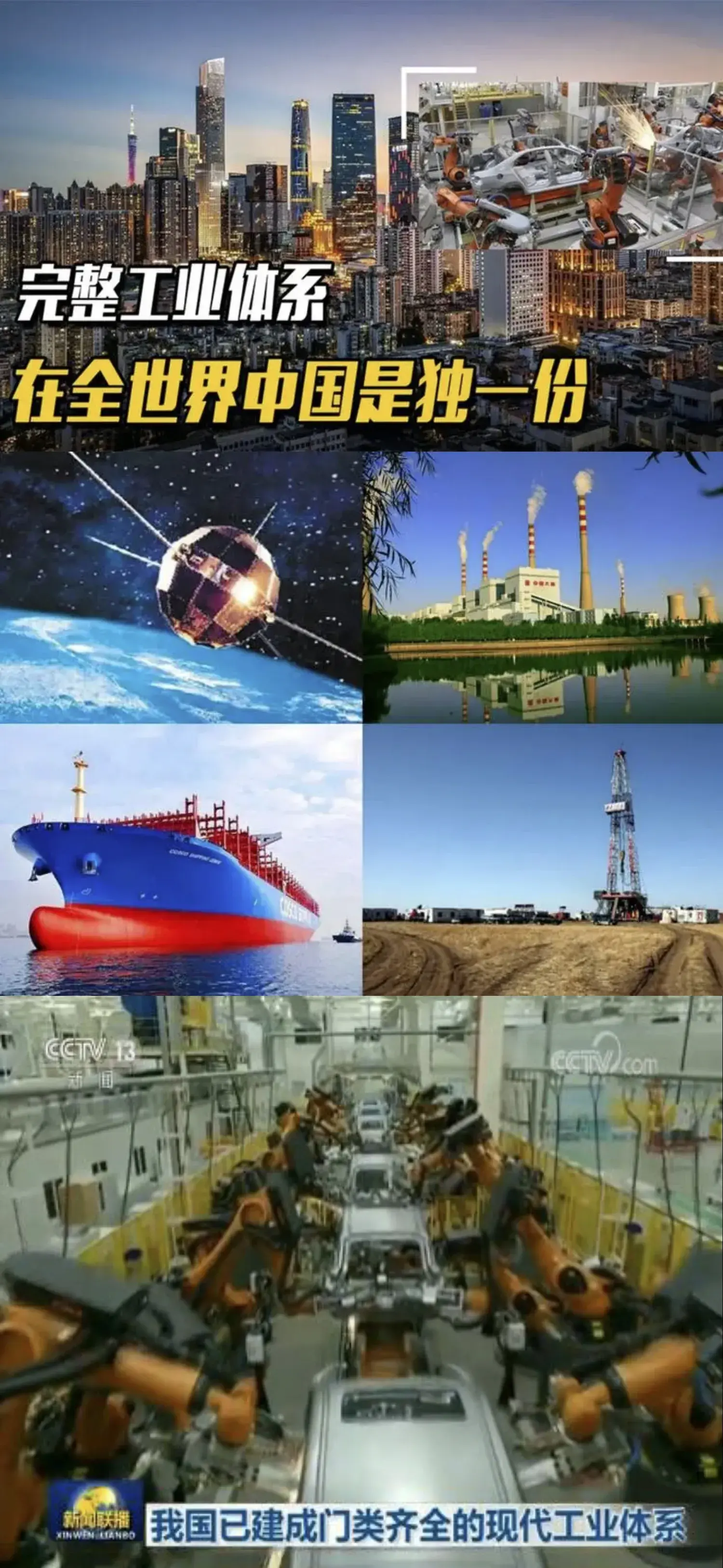 39个大类、523个小类全部具备,唯一一个超级大国老美都无法做到,部分零件和产品还需要从国外进口,这种概念到底有多恐怖?下到衣裤鞋袜,上至火箭飞船,我国不仅完全能够做到工业内循环,还能向国外大量出口工。