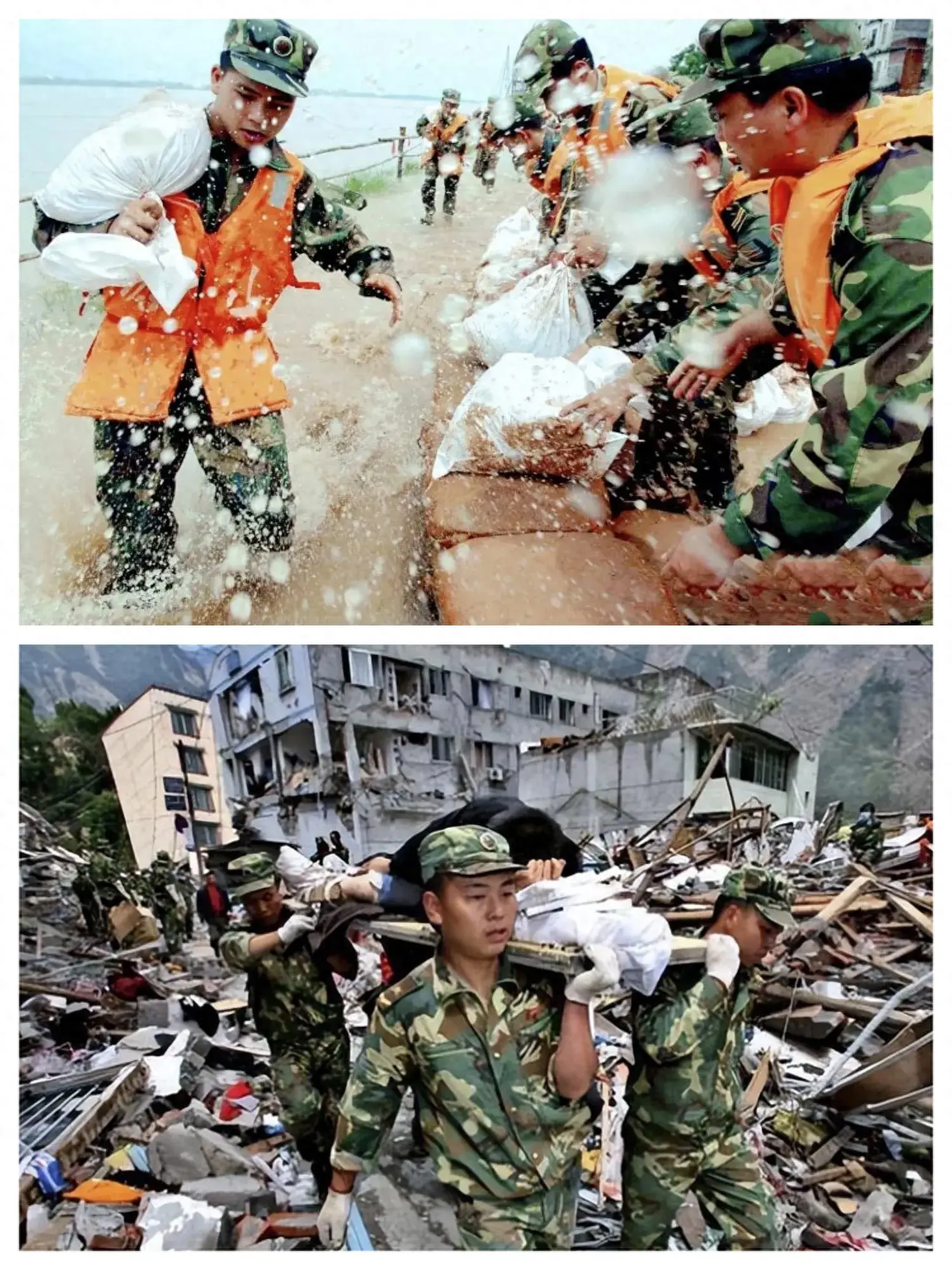 从1998年特大洪水,32万解放军第一时间赶往救灾现场抗洪。